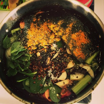 - 12 black peppercorns, 4 whole allspice or juniper berries, 2 bay leaves, 1 teaspoon sea salt, 1 teaspoon of oregano, 1 teaspoon of sage, 2 teaspoons of turmeric, 1 teaspoon of nettle leaf, 1 teaspoon of calendula, 1/2 teaspoon of cayenne if you like it spicy!